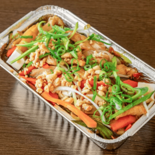 Fried Kip, Avocado, komkommer, seaweed, maize, ginger, wortel, droge ui, mayonaise, paling sauce.